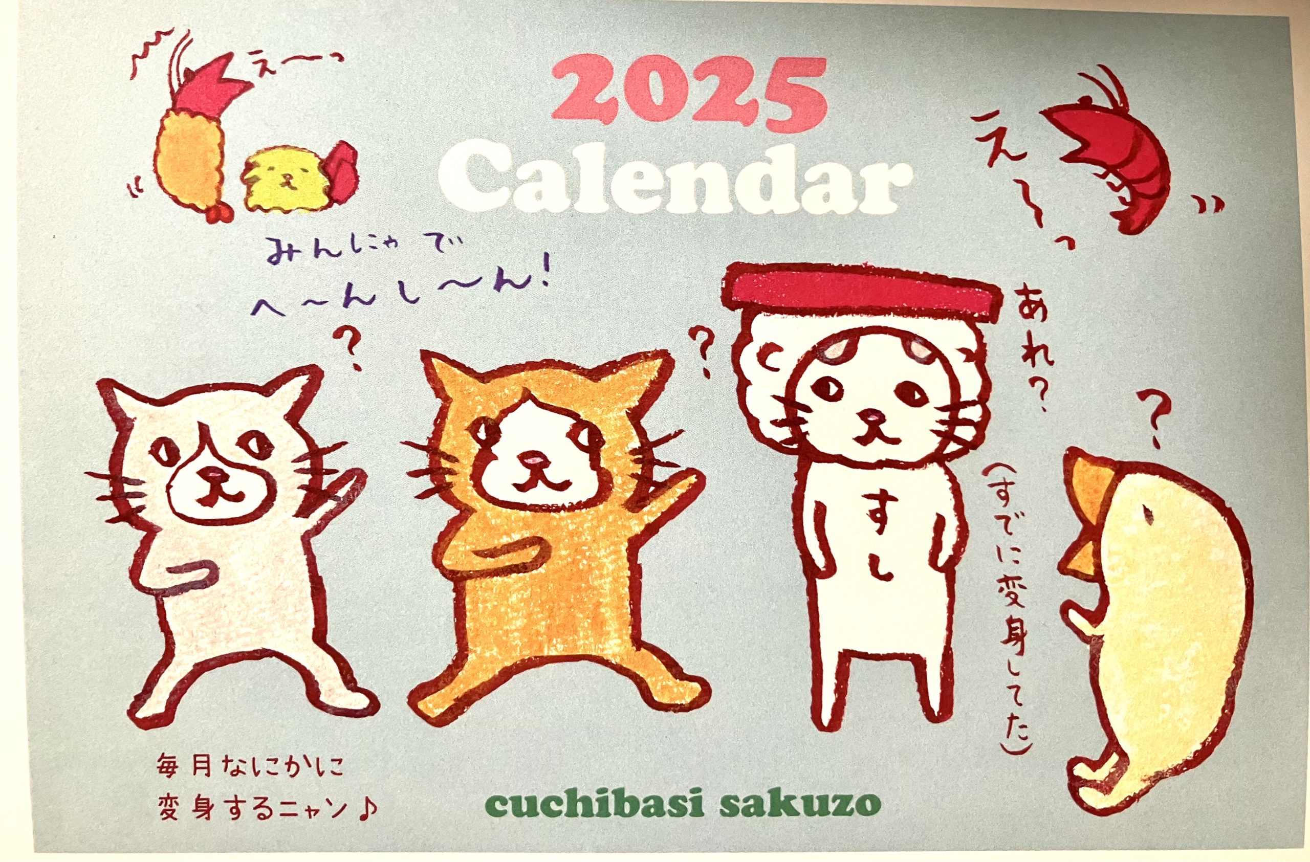 2025年も最後の日になりました。 カレンダーは、毎年こちらをお願いしております。 くちばしさくぞう先生のカレンダーにも楽しませていただきました。 今年は可愛いキャラクターが 毎月「変身」してくれましたよ。 来年2026 [...] [...]