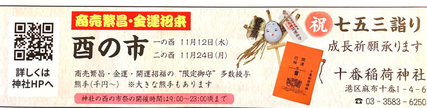 港区でココだけ!十番稲荷神社で2025年11/12と11/24酉の市があります