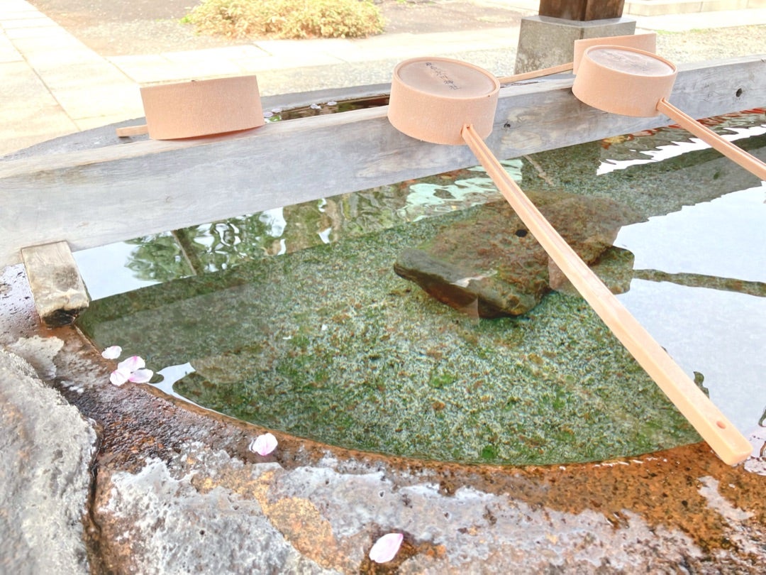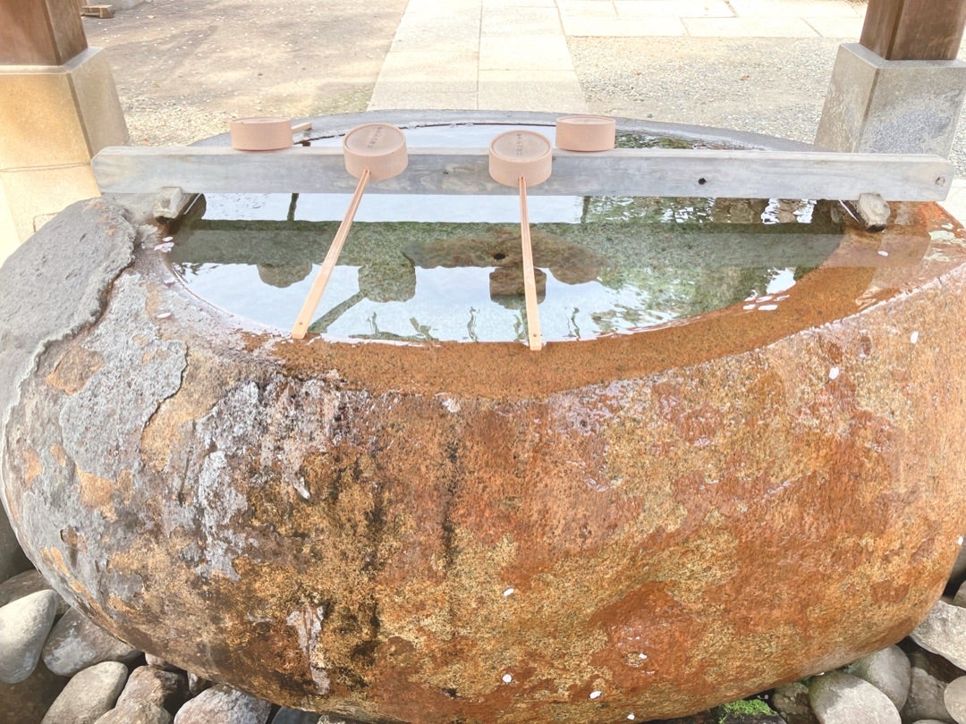 手水舎のふちにいたんです。
